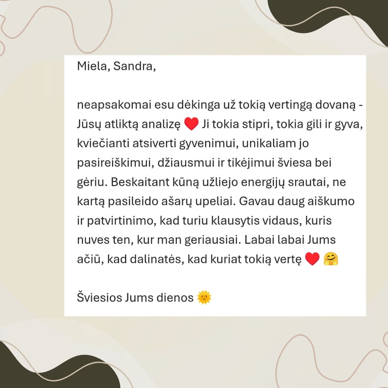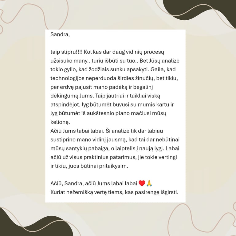 Man svarbu ne tik analizuoti, bet ir padėti žmogui atrasti vidinį balansą tarp žemiško ir dvasinio pasaulio.